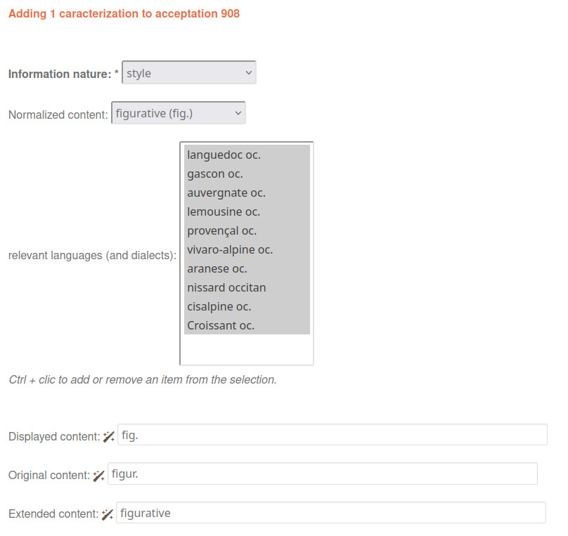- Write "figurative" in the "extended content" field of the characterization displayed information